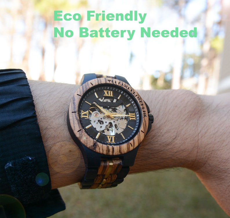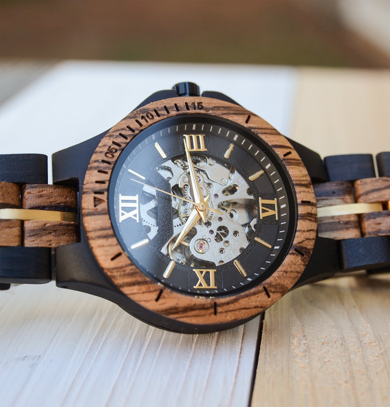 100% Real Natural (RECLAIMED) WOOD Automatic Mechanical Watch For Men (No Battery Needed). Our ultra-premium wooden men's watch is made out of 100% natural wood (with the exception of the dial, the gears & the folding clasp).